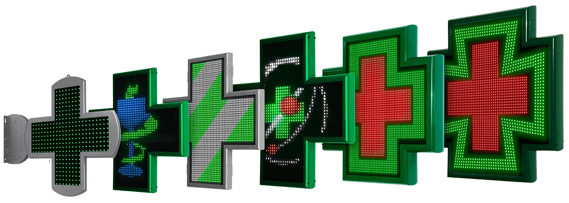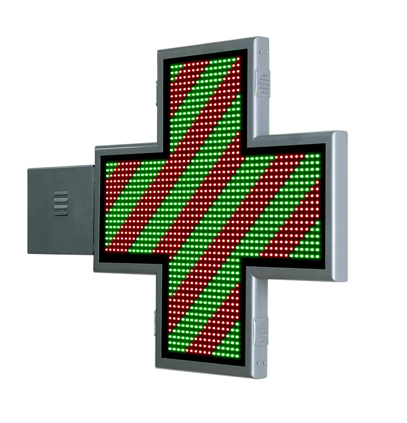Las cruces de farmacia Full Color son aquellas capaces de reproducir imágenes y vídeo a todo color como si de un monitor de televisión se tratase. El precio de estas cruces de farmacia es más elevado pero permiten mostrar anuncios de laboratorios y promociones de artículos de manera muy llamativa.